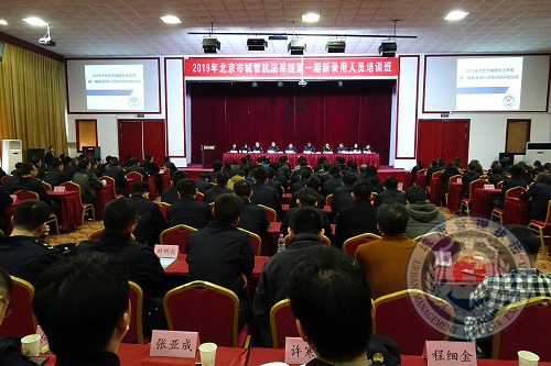 3月4日上午,2019年城管执法系统第一期新录用人员培训班举行开班仪式。赵世龙同志出席开班仪式并讲话,教育训练总队李满星总队长主持开班仪式,东城、西城、朝阳、海淀、丰台、石景山、房山、天安门等八个区(分)局主管局长和科室负责人参加开班仪式,参训单位和学员代表作了表态发言。